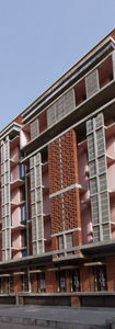 Design Plus’s proposal complies with the existing block, integrating core elements such as exposed brick work, types and sizes of fenestrations, R.C.C jaali, R.C.C bands and tiling; however, the rhythm is altered. In addition, a new element was introduced, the jaali box. This further amalgamated the new wing to the additional floors of the existing blocks. These subtle alterations, only noticeable when pointed out respect the existing context and also highlight our individuality.